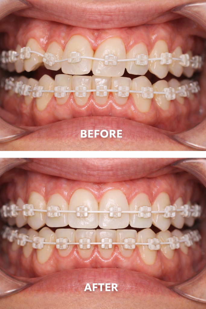 With consistent care, ceramic braces deliver beautifully aligned teeth, improved bite function, and enhanced overall smile aesthetics. The result is a confident, naturally balanced smile with long-lasting stability.